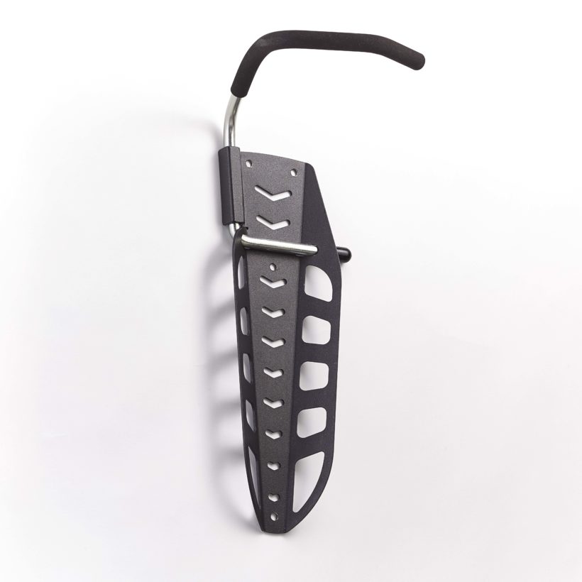 Fabriqué en acier, ce crochet est gainé pour éviter les éraflures. Ses dimensions sont de 180 mm de longueur, 140 mm de largeur et 360 mm de hauteur, avec un poids de 0,76 kg. Idéal pour optimiser l'espace de rangement tout en protégeant votre vélo.