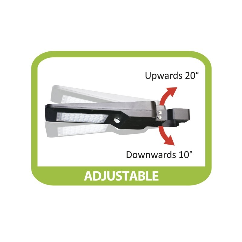 La batterie lithium intégrée de 5000 mAh assure une longue autonomie, même par temps nuageux, grâce à un panneau solaire monocristallin de 9,5 W doté d’une technologie de charge intelligente. Le projecteur se recharge automatiquement durant la journée et s’allume la nuit sans intervention. Le détecteur de mouvement intégré permet un éclairage adaptatif : la lumière reste à 20 % de sa puissance et passe à pleine intensité (1600 lumens) dès qu’un mouvement est détecté à une distance de 8 mètres. Après 20 secondes sans détection, l’éclairage redescend à 20 % et peut s’éteindre complètement après 5 minutes, selon le niveau de batterie.