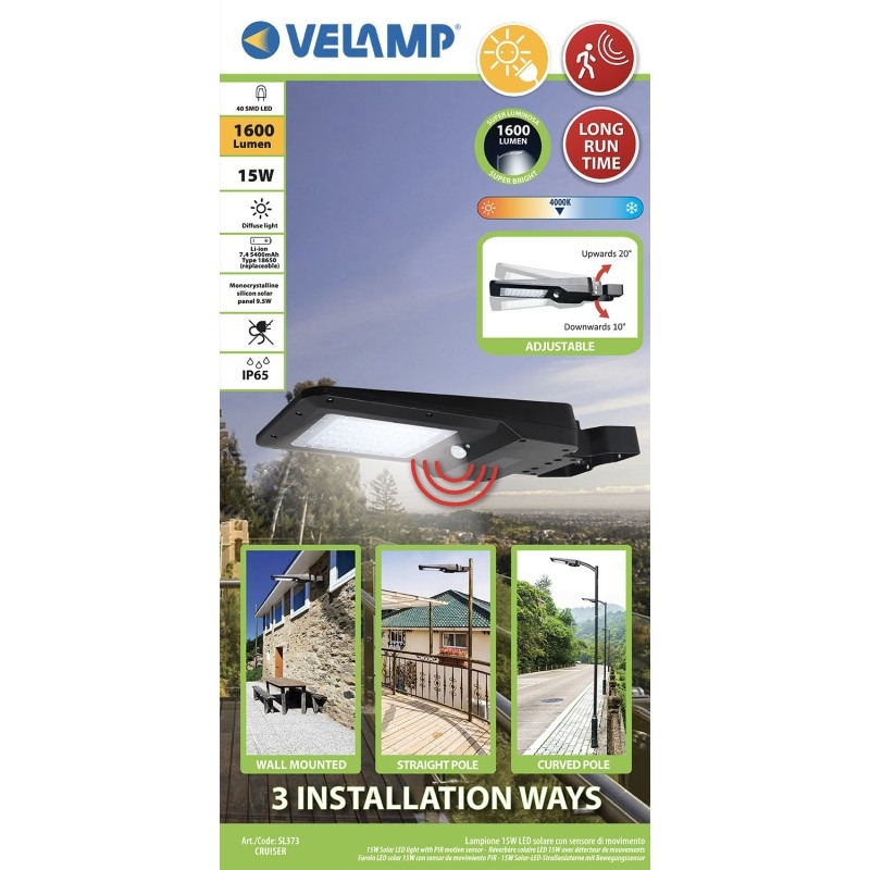 Découvrez CRUISER Projecteur LED solaire 1600 lumens avec détecteur de mouvement - VELAMP - SL373 disponible à l'achat
