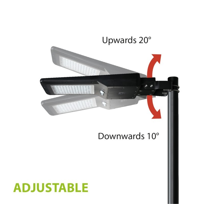 Robuste et fiable, ce lampadaire solaire bénéficie d’une conception IP65 qui le rend résistant à l’eau, aux UV, à la neige, à la pluie et aux températures extrêmes (-15°C à +50°C). Entièrement sans fil, il est simple à installer sur un mur ou un mât (droit ou incurvé) à une hauteur recommandée entre 3 et 5 mètres.
