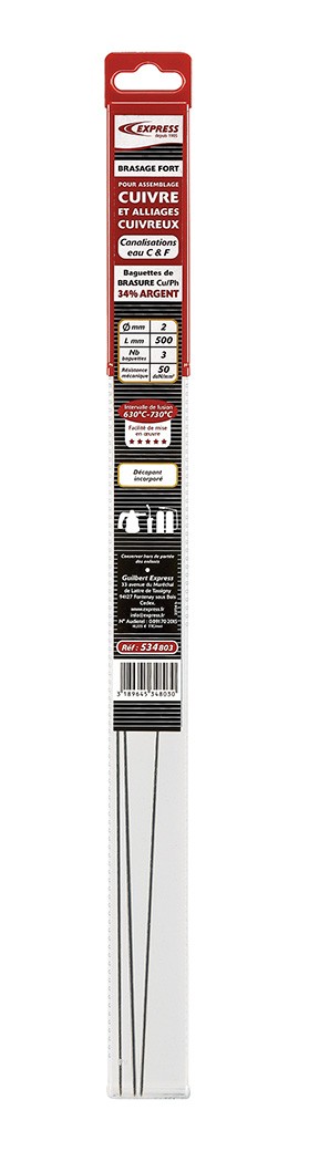 Découvrez CUIVRE ZINC 34% AG FLUX INCORPORE - Ø 2 MM - 3 BAG - L 500 MM - EXPRESS - 534803 disponible à l'achat