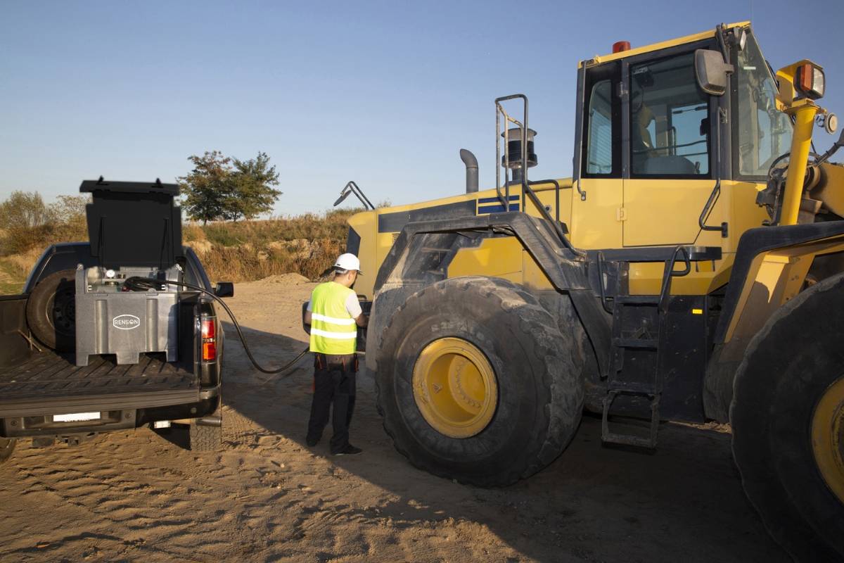 Solution de ravitaillement fuel compacte. Les dimensions de la cuve sont adaptées pour tous types de véhicules utilitaires.