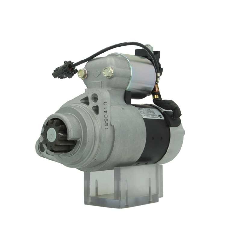 Le démarreur présenté est un modèle neuf de la marque Hitachi, spécifiquement conçu pour certaines motorisations d'Infiniti. Ce démarreur a une puissance de 1,4 kW et fonctionne sous une tension de 12 volts. Il se distingue par un ajustement de 68 mm et possède 10 dents, avec un pignon à une position de base de 36,5 mm. La fixation est assurée par deux trous et un filetage M8 pour le B+, avec une rotation dans le sens des aiguilles d'une montre.