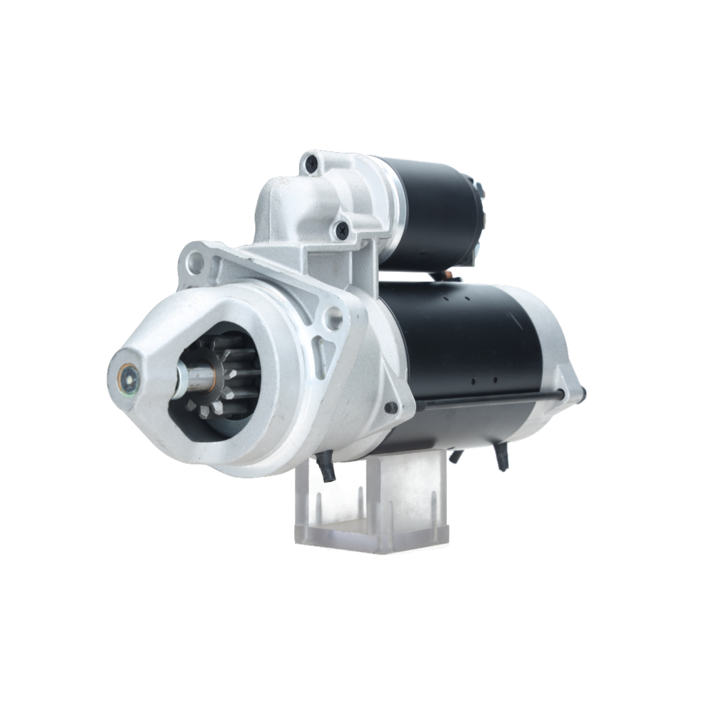 Le démarreur Mercedes 4.0 kW, référence 551.509.113.440, est conçu pour offrir une puissance de démarrage efficace avec un voltage de 24 volts. Ce démarreur présente une puissance de 4 kW, et ses dimensions sont ajustées à 89 mm. Il est doté de 11 dents, avec un pignon positionné à 27,5 mm. Pour les installations, il se fixe à l'aide de 3 trous avec une connexion B+ de type M10, et sa position est de -30° en rotation dans le sens horaire.
