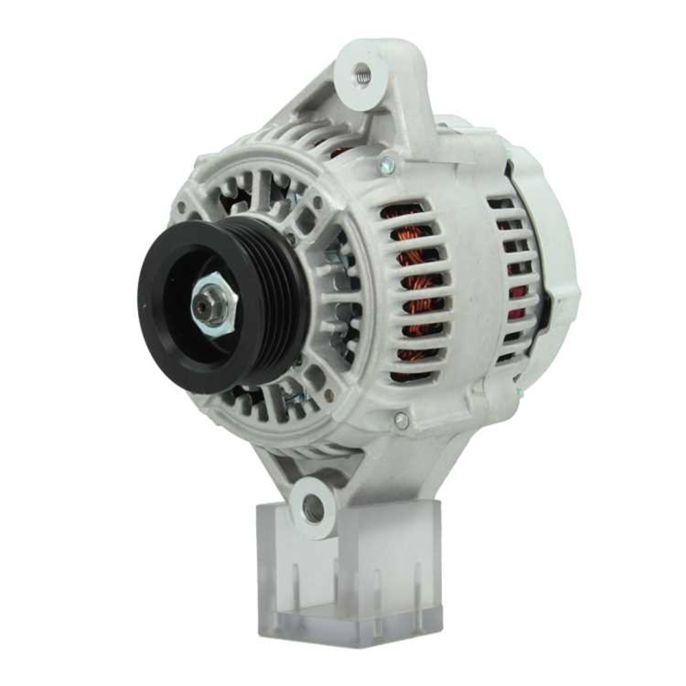 Il est équipé d'une poulie de 56 mm, qui ne débraye pas, et présente cinq gorges pour s'adapter parfaitement à votre installation. Le point de fixation B+ est de type M6 et le démarreur dispose de deux trous de fixation, avec une position indiquée à +25 degrés, facilitant son installation dans le véhicule.