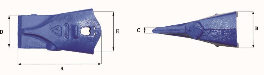 Type Standard Taille 55 : Dent longue et plate. Profil idéal pour le terrassement, bonne pénétration et résistance à l’abrasion
