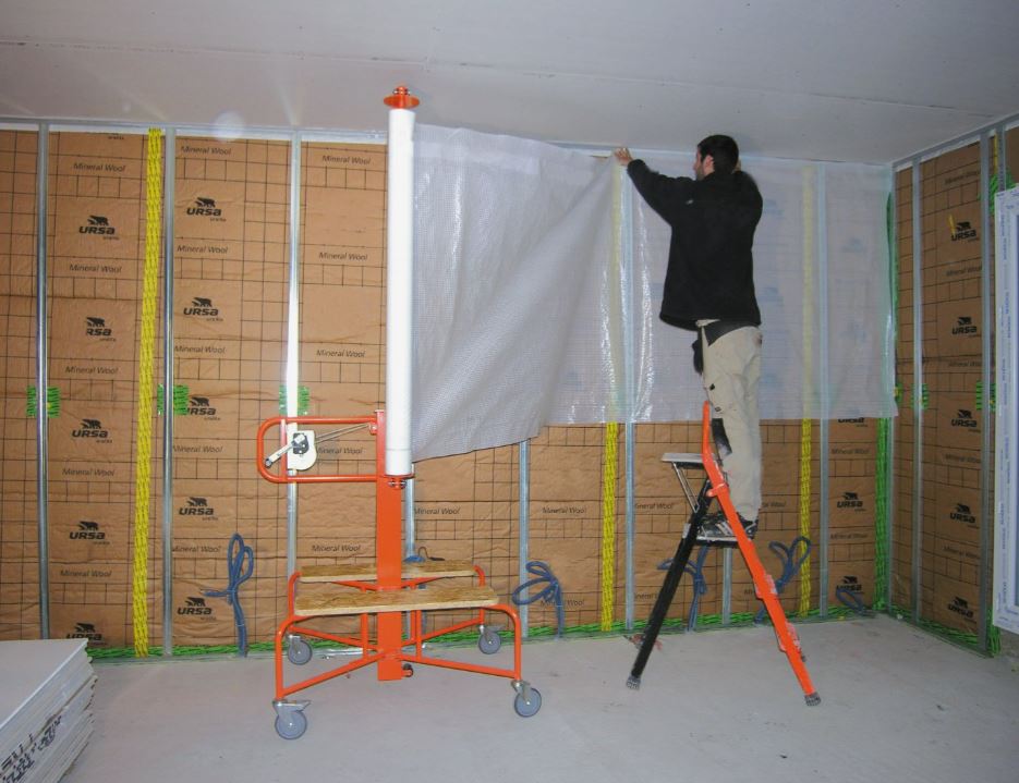 Adaptable sur la gamme LEVPANO®. MONTAGE SUR LEVPANO® : adaptation facile et rapide sur le châssis des LEVPANO® I et II, LEVPANO COMBI® et MASTER® grâce aux 3 adaptateurs livrés avec le dérouleur : Un adaptateur pour l'ancienne génération de LEVPANO® I et II sans rallonge intégrée / Un adaptateur pour les LEVPANO COMBI® et MASTER® / Un adaptateur pour les appareils à colonne de 3 mm. Facile et rapide : gain de temps et pénibilité réduite pour le poseur (prévention des T.M.S.). Utilisation : facilite la pose du film pare-vapeur (exigences RT 212 Maisons BBC - étanchéité à l'air) : Au plafond et au mur / Sur les armatures métalliques et les ossatures bois / Avant la pose de la plaque de plâtre ou de tous panneaux bois / lambris, etc. Facilite la pose de la toile de verre et des intissés à peindre, en rouleau de 1 m et 1,6 m grâce aux fl asques réglables. Pour rouleaux de largeur 1,5 m maximum. Flasques réglables : 1,5 m centré / 1 m et 1,6 m centré / 1 m et 1,6 m déporté. Charge maximum : 3 kg. Caractéristiques : conforme à la norme CE, conforme à la directive européenne 26/42/CE, examen de conformité réalisé par SOCOTEC. En tube acier, finition époxy.