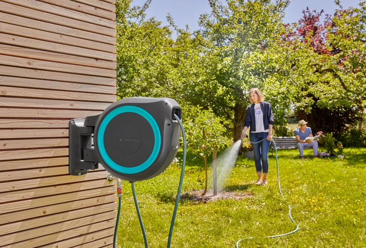 Découvrez Dévidoir automatique mural RollUp L 30 m - GARDENA bleu turquoise - GARDENA - 18625-20 disponible à l'achat