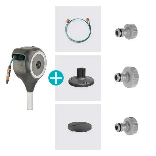 Adapté aux terrasses en bois ou en béton, ce dévidoir se fixe solidement à l’aide de son support de fixation inclus, complété par des vis et chevilles. Sa capacité à pivoter à 360° offre une liberté totale pour atteindre toutes les zones de votre jardin, même les plus difficiles d’accès, sans compromettre le confort d’utilisation.