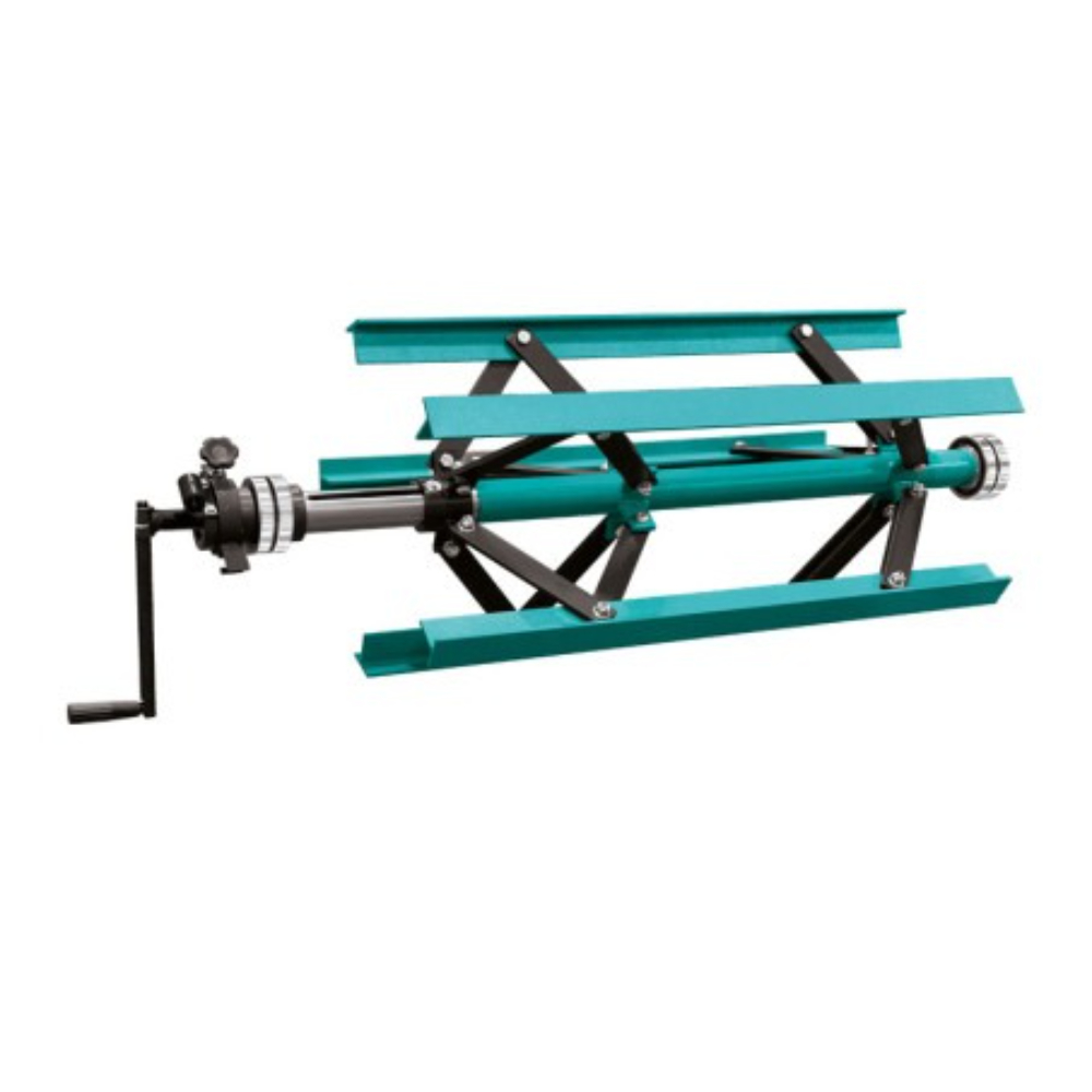 Chaque unité est équipée d’un moyeu à expansion manuelle, réglable pour accueillir des diamètres de mandrin de 285 à 540 mm, et d’un frein manuel couplé à une manivelle placée du même côté pour un réglage rapide et pratique. Ce système autorise également le chargement latéral, une fonction précieuse lorsqu’un dévidoir est déjà empilé au-dessus.
