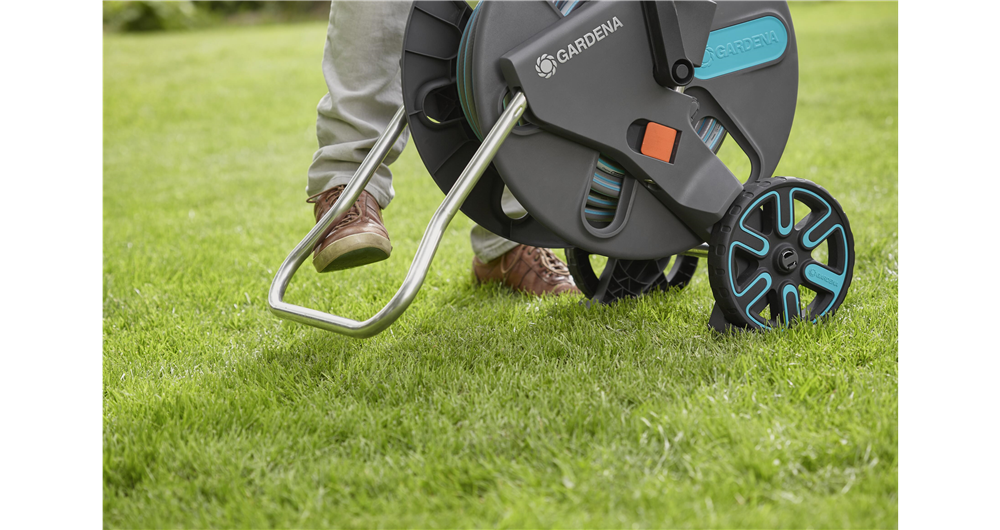 Ce dévidoir fonctionne en offrant une grande capacité d'arrosage, pouvant accueillir jusqu'à 100 mètres de tuyau d'un diamètre de 19 mm. Il est conçu pour répondre aux besoins des utilisateurs dans divers contextes, que ce soit pour de petites cultures ou de vastes jardins. Grâce à sa fonction Kick&Stand, il reste stable même lorsque vous tirez sur le tuyau. Le dévidoir est également équipé de grandes roues profilées, ce qui facilite son déplacement sur le terrain. Lorsqu'il n'est pas utilisé, il se replie facilement pour un rangement compact.