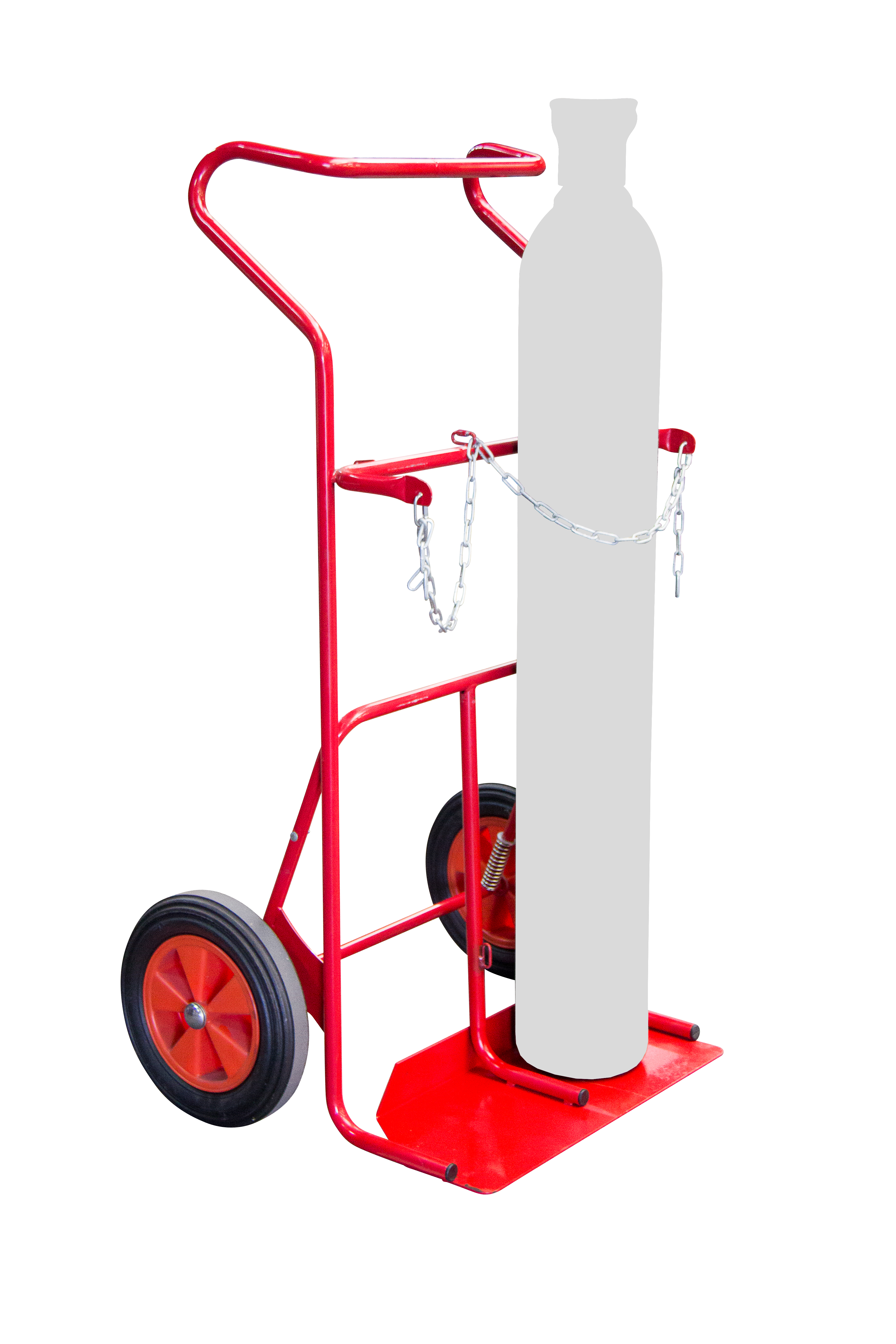 Diable porte bouteilles pour chantier, compatible avec bouteilles type B20 - B40 - B50 - B84. Basculement assisté qui réduit de plus de 50% l'effort de basculement : système constitué de 2 ressorts de compression qui s'actionnent dès que l'on incline le diable. Grandes roues permettant de diminuer l'effort de traction. Fabrication française de qualité. Livré prêt à l'emploi. Poignée cintrée protégeant l'opérateur pendant la manutention. Attache rapide de la chaîne par mousqueton. Roues pneumatiques pour sols accidentés.