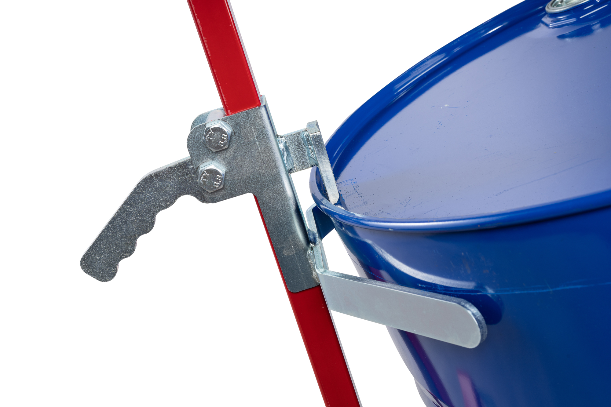 - Système d’accroche du fût par levier à came assurant le maintien de la charge pendant toute la durée de la manutention.