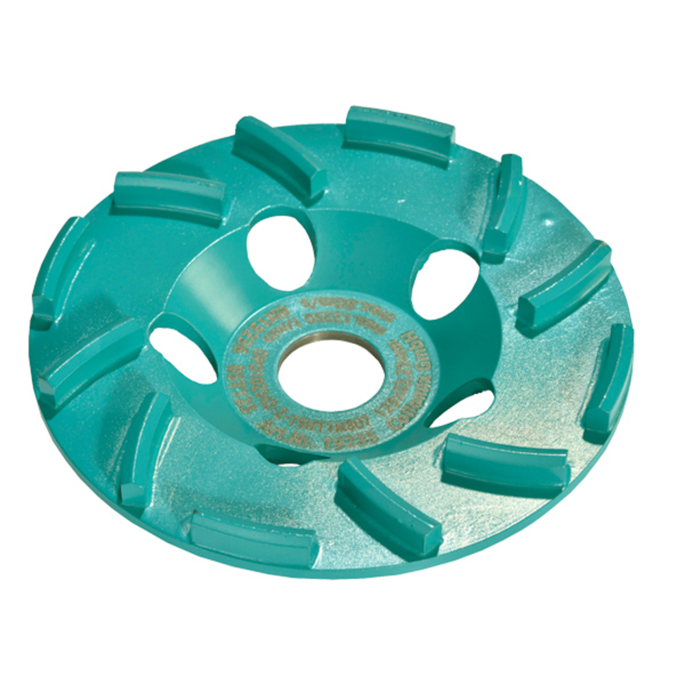 Disque à meuler d’excellente qualité de 12 segments, longue durée de vie pour une gamme d'applications universelle; disposition décalée des segments pour une meilleure évacuation de la poussière, revêtement diamanté uniforme pour une performance de ponçage constante sur les poutrelles en acier, décapage fort; aspect de ponçage grossier; pour poncer du béton ancien, pour préparation du sol sur chape dure, pour retirer la colle de carrelage et les joints de coffrage, brique silico-calcaire, pour poncer les enduits en chaux et ciment, pour niveler les pierres naturelles.