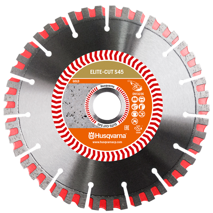DISQUE DIAMANT HUSQVARNA ELITE CUT S45 POUR MEULEUSE D'ANGLE Ø 230 MM COUPE BRIQUE ET BETON ALÉSAGE 22.2- 579805080