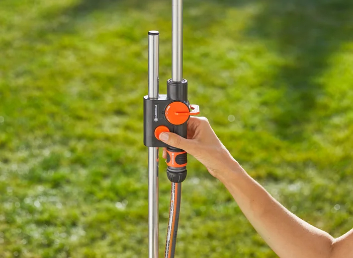 La douche de jardin Solo GARDENA est la solution idéale pour se rafraîchir pendant les journées les plus chaudes. Conçue pour offrir un confort optimal, elle s’installe facilement grâce à son pic, qui permet de la planter dans la pelouse ou dans un pied de parasol sur votre terrasse. Sa hauteur, pouvant atteindre 207 cm, est entièrement réglable à l’aide d’un simple bouton-pression, offrant ainsi une expérience de douche parfaitement adaptée à la taille de chaque utilisateur.