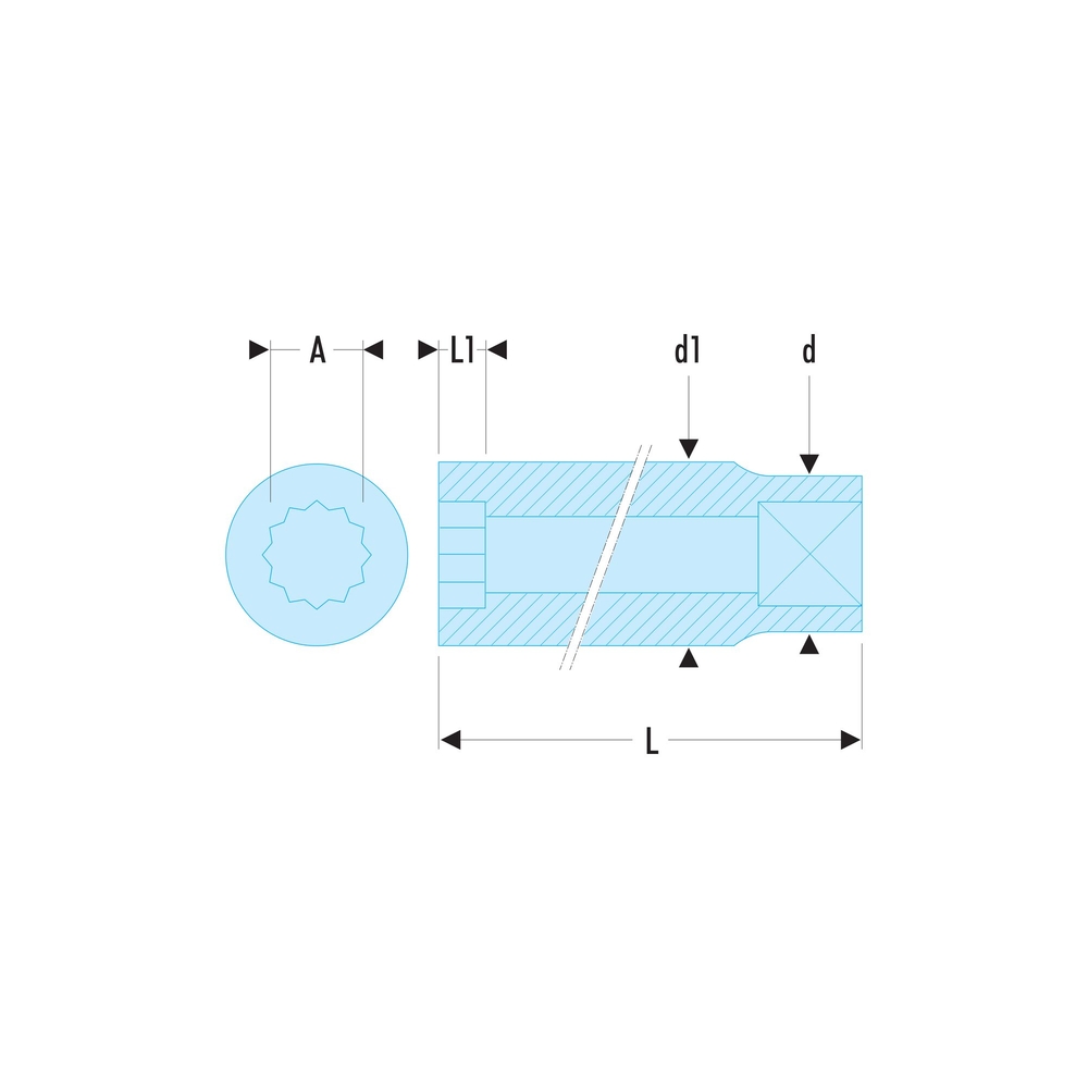 Cette douille se distingue par son design chromé brillant qui allie esthétique et durabilité. Elle est proposée en pack de cinq, facilitant le rangement grâce à sa compatibilité avec les racks métalliques référence S.40E (8 à 16 mm) et S.41E (17 à 24 mm). Avec ses 12 pans métriques, elle assure un ajustement parfait sur les têtes de boulons, rendant vos manipulations plus efficaces.