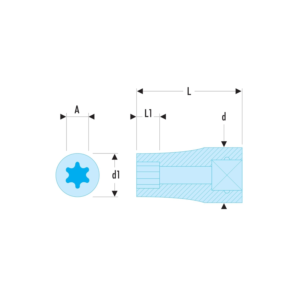 Cette douille est spécialement conçue pour interagir avec des vis mâles Torx®. Grâce à son empreinte unique, elle garantit une prise optimale et évite le glissement lors des opérations de vissage. Idéale pour les professionnels et les bricoleurs, cette douille se fixe facilement sur une clé à douille ou un cliquet 1/4".