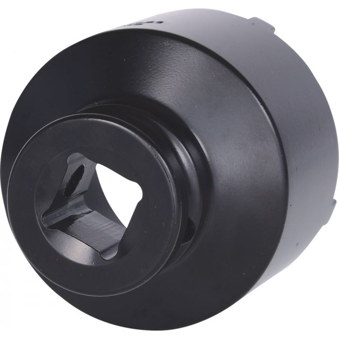 La douille présente un carré intérieur conforme aux normes DIN 3121 / ISO 1174, offrant un serrage au couple précis. Fabriquée en alliage spécial, elle se distingue par sa robustesse et sa finesse. Ses dimensions incluent un diamètre extérieur de 52,3 mm, un diamètre intérieur de 41,5 mm, et une hauteur de 60 mm. Avec quatre ergots, elle s'adapte parfaitement aux écrous de type KM6 et son embout mesure 5 mm de large.