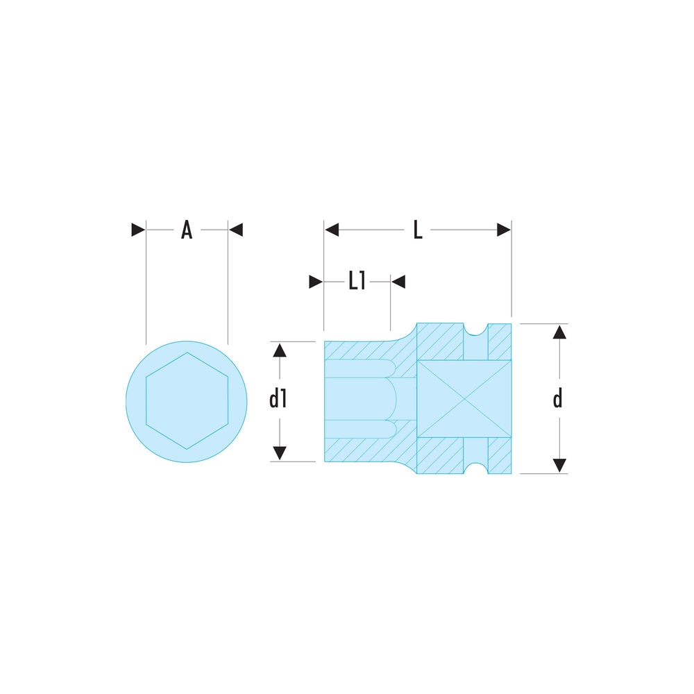 Douille impact 6 pans en pouces 1/2" 11/16" - FACOM - NS.11/16A