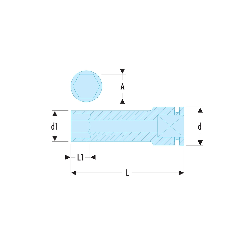 Douille impact longue 6 pans parois fines métrique 1" 33 mm - FACOM - NMB.33