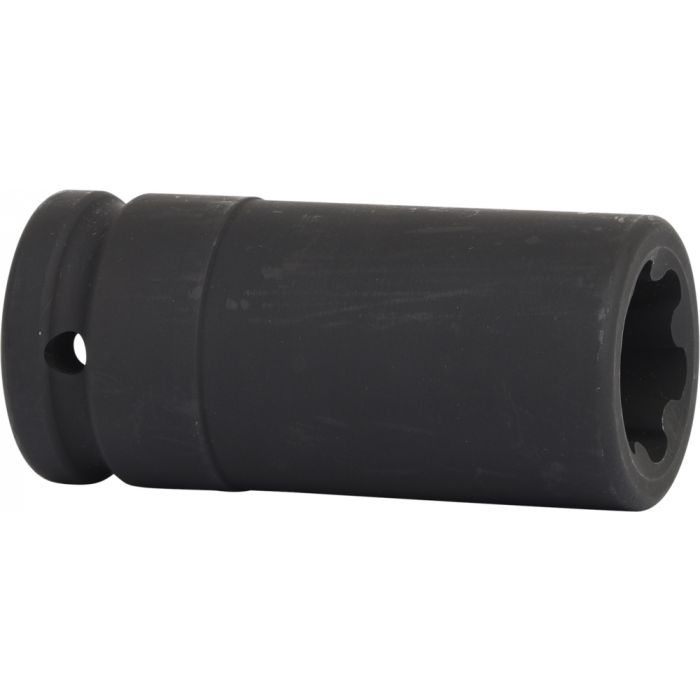 Cette douille est essentielle pour le montage et le démontage d'écrous de moyeux Torx-E-Plus. Elle est uniquement destinée à un usage avec des outils à chocs, garantissant une efficacité maximale lors de l’application de couple sur les pièces. Veillez à l'utiliser avec un carré d'entraînement de 3/4 pouce, selon les normes DIN 3121 et ISO 1174.