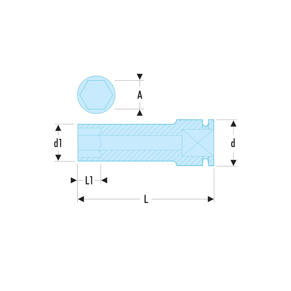 - Type : Douille impact 1/2" longue 6 pans métriques