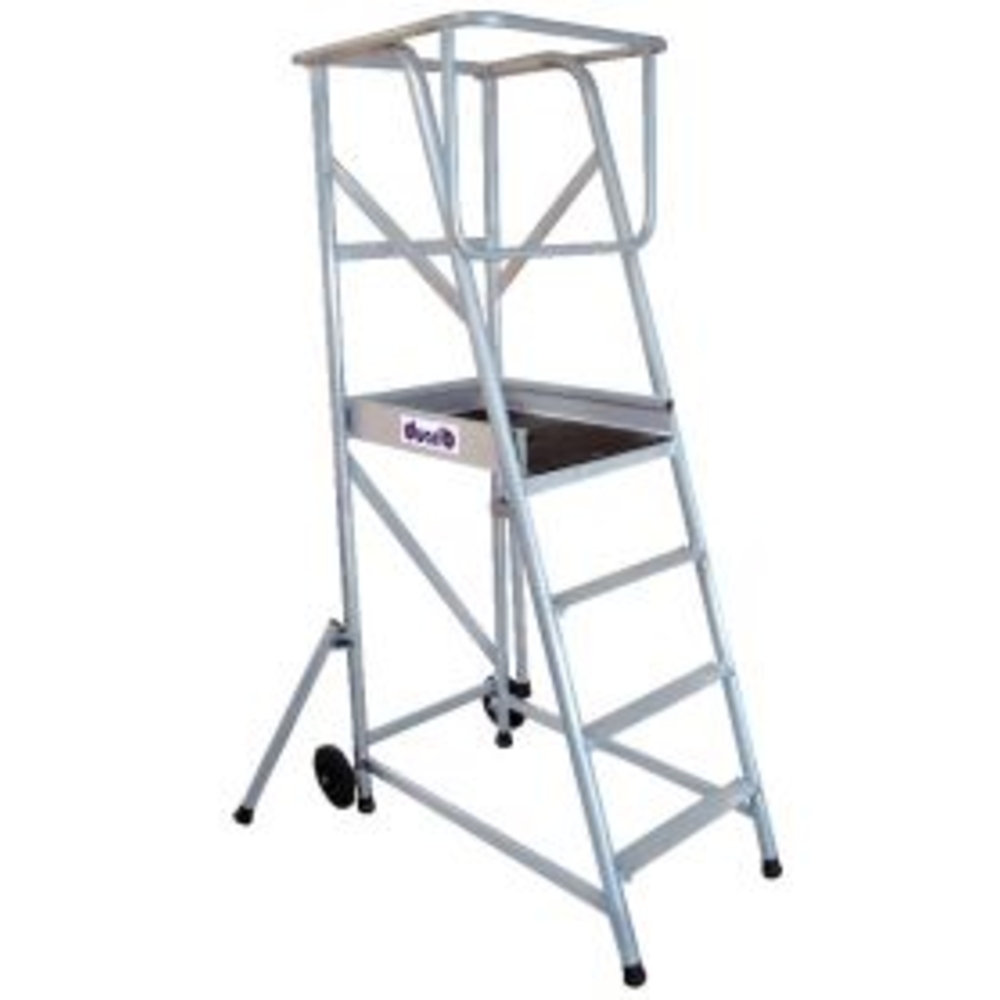 Conçue avec des marches antidérapantes de 80 mm, elle assure une sécurité optimale lors de vos tâches. Ses stabilisateurs orientables et auto-ajustables s'adaptent parfaitement au sol, offrant une stabilité accrue. Le garde-corps arrière, monté sur pivot, facilite l’accès au poste de travail tout en améliorant la sécurité de l’utilisateur.