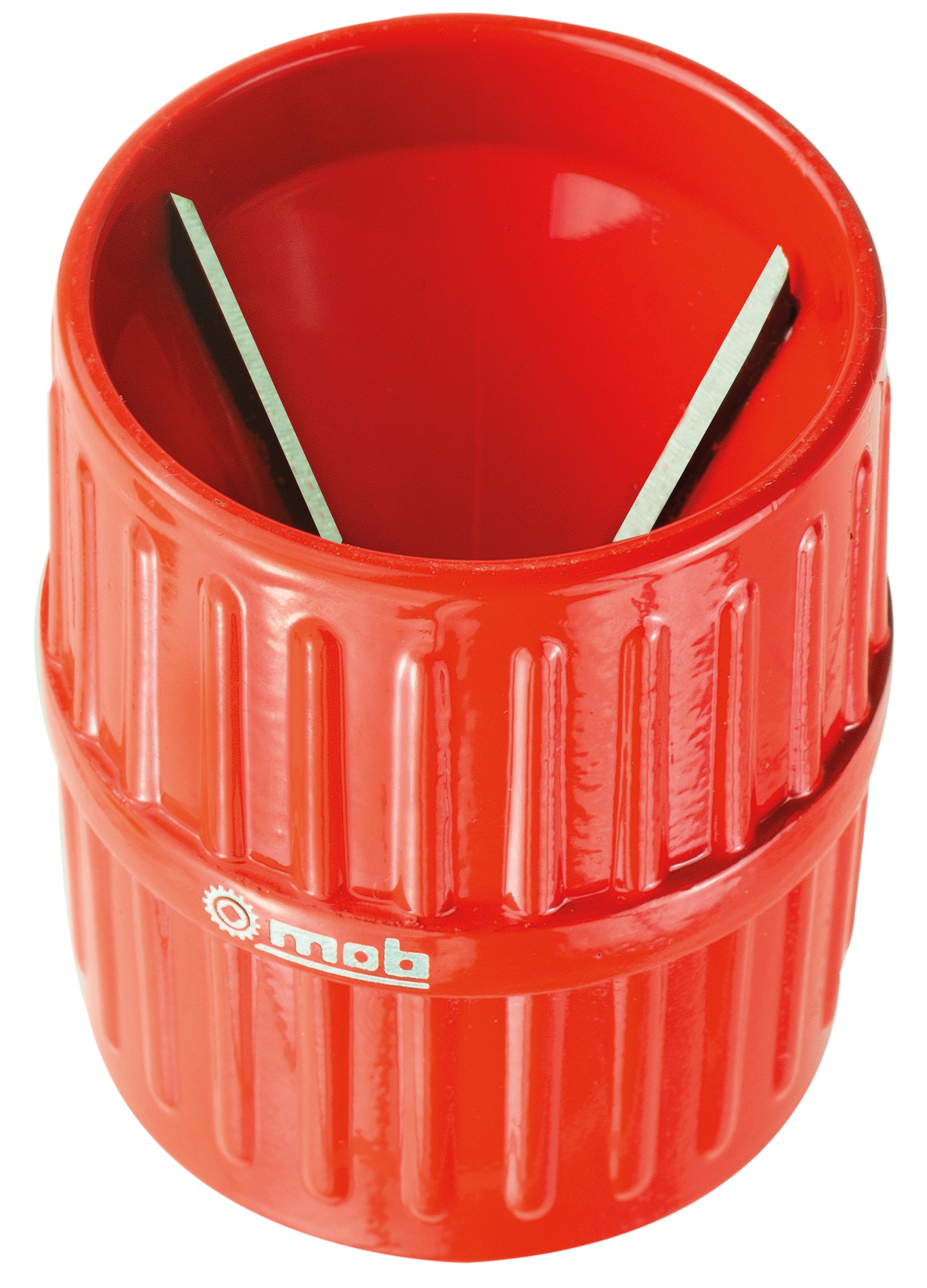 UTILISATION . Pour ébavurer les tubes après coupe, pour tous types de matériaux : cuivre, inox, aluminium, acier, PEHD. 2 côtés : 1 côté intérieur et 1 côté extérieur. Lames disposées en cône pour une capacité jusqu'à Diamètre 4mm.