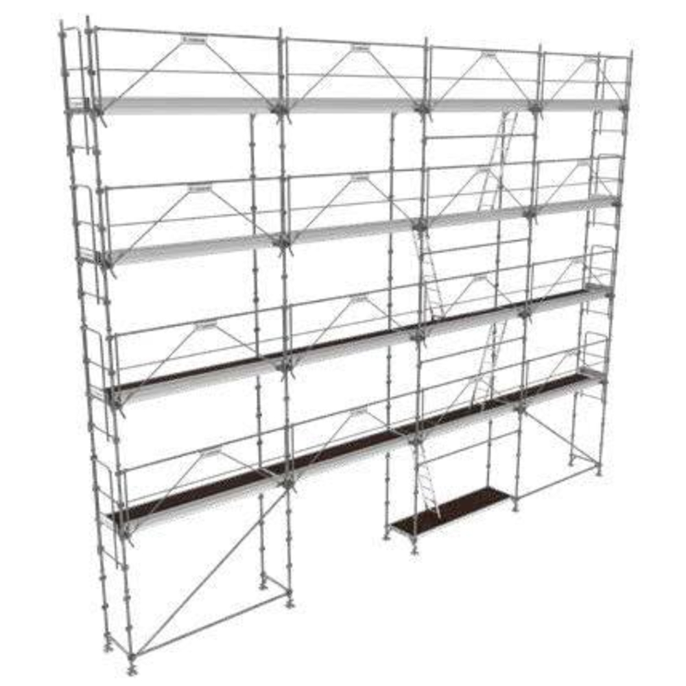 Echafaudage ACIER fixe R200 PROGRESS MEDIUM 128m2 avec garde-corps FUSIO + planchers alu/bois + plinthes - TUBESCA - 0P000964