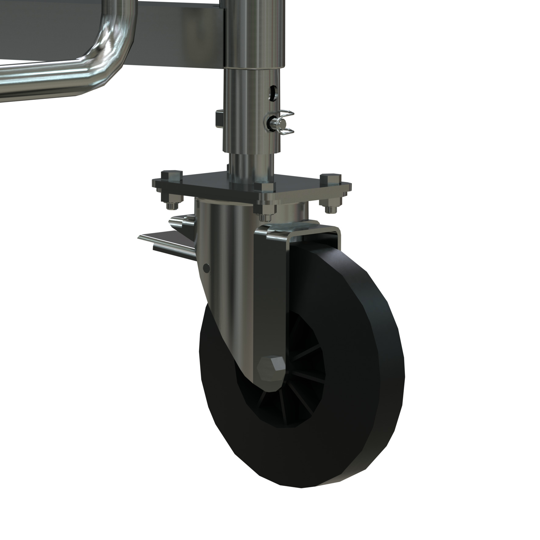 - Kit escalier en option et réglage des roues permettant de rattraper un dénivelé.