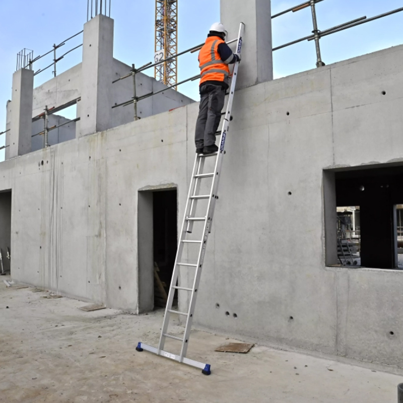 L’échelle coulissante 2 plans à main CM2 2x8 barreaux combine robustesse et praticité pour un accès sécurisé jusqu’à 4,95 mètres. Conçue en aluminium, elle offre une structure légère et résistante, renforcée par de larges profils fermés assurant une stabilité optimale. Conforme à la norme EN 131 et labellisée NF, elle répond aux exigences de sécurité les plus strictes. À partir de 12 barreaux, elle est équipée de roulettes murales de 100 mm à bandage caoutchouc non marquant, facilitant son déploiement sans altérer les surfaces. Capable de supporter une charge maximale de 150 kg et assemblée par sertissage, elle garantit fiabilité et longévité. Disponible en plusieurs configurations allant jusqu’à 2x14 barreaux, cette échelle de fabrication française constitue un choix sûr et performant pour les travaux en hauteur.