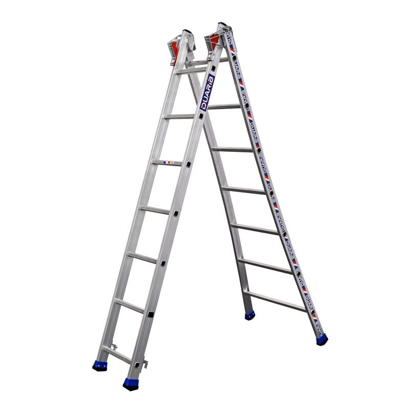 L’échelle transformable à base évasée 2 plans DUARIB MASTER T2 1m95 allie polyvalence, confort et sécurité pour les travaux en hauteur. Elle est conçue avec une articulation vissée au profil et un axe de guidage intégré qui facilitent une ouverture rapide et sans effort. Les cales en polypropylène assurent un coulissement fluide des plans. Sa base évasée renforce la stabilité, notamment sur sols irréguliers, et lui permet de franchir des obstacles. Elle est équipée de larges patins antidérapants et d’un verrou de sécurité sur le crochet de réglage de la hauteur.