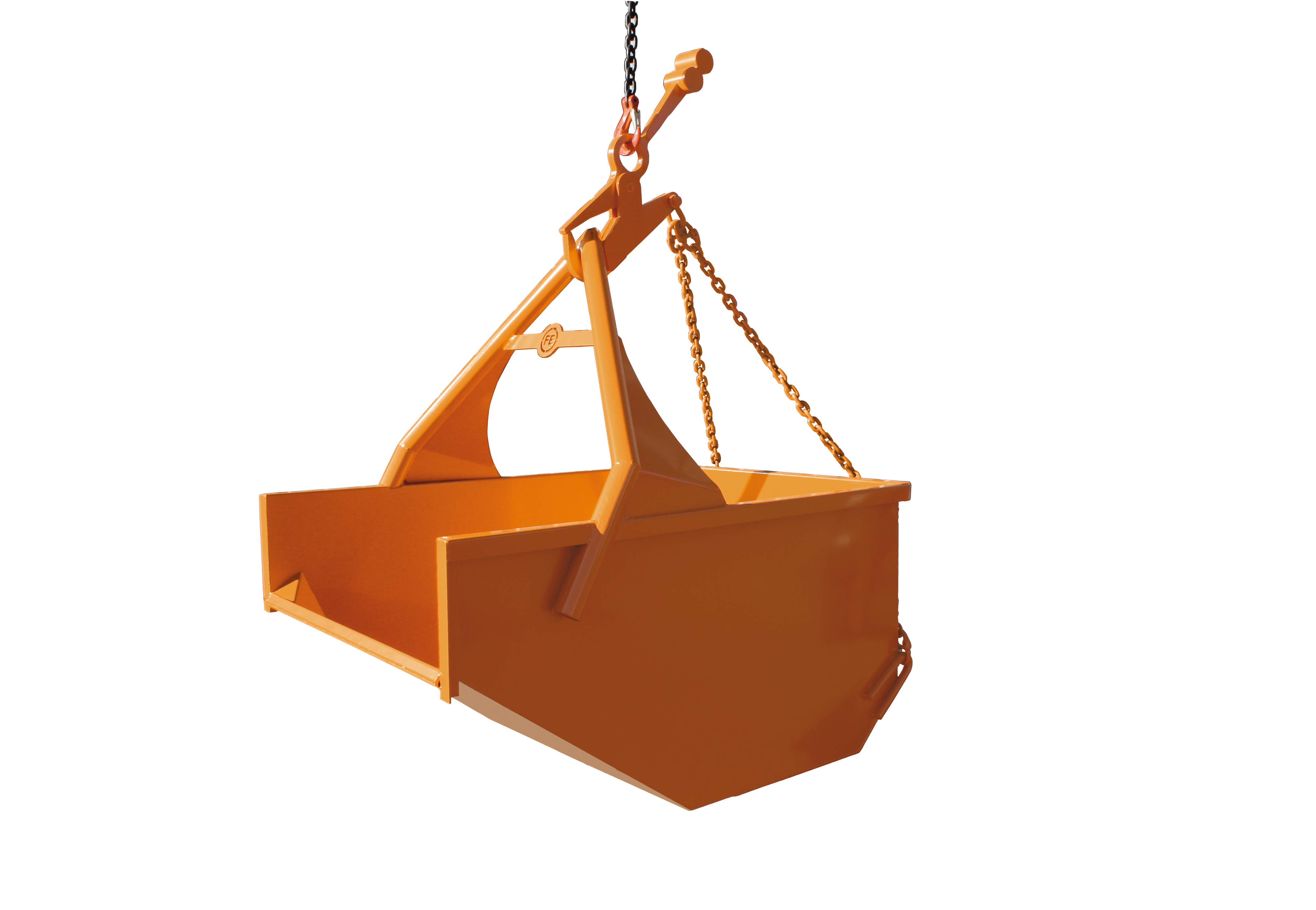 Avec anse, chaîne et crochet de haute sécurité pour le vidage automatique de la benne sans assistance au sol.La benne est posée à l'endroit du vidage, donne un peu de «mou» au câble, dégage le crochet et remet en tension le câble. Ce faisant, la benne pivote alors de l'arrière vers l'avant et se vide. L'opération inverse est possible.Particulièrement adaptée au transport de produits en vrac tels que les gravats, le béton, la terre, etc.…Densité maximum du produit = 2.4. Au-delà de cette densité, consultez nous (fabrication spéciale).