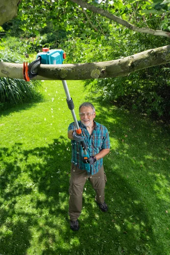 L'élagueuse sur perche à batterie vous permet d'élaguer les arbres jusqu'à 4 m de haut en toute sécurité depuis le sol.