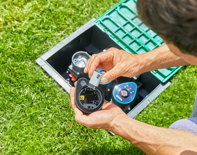 Aucun câble de connexion est nécessaire entre électrovanne programmable Bluetooth® et l'application Bluetooth® GARDENA. Elle fonctionne avec 1 pile alcaline 9 V (non fournie) qui peut assurer une autonomie d'environ 1 an.