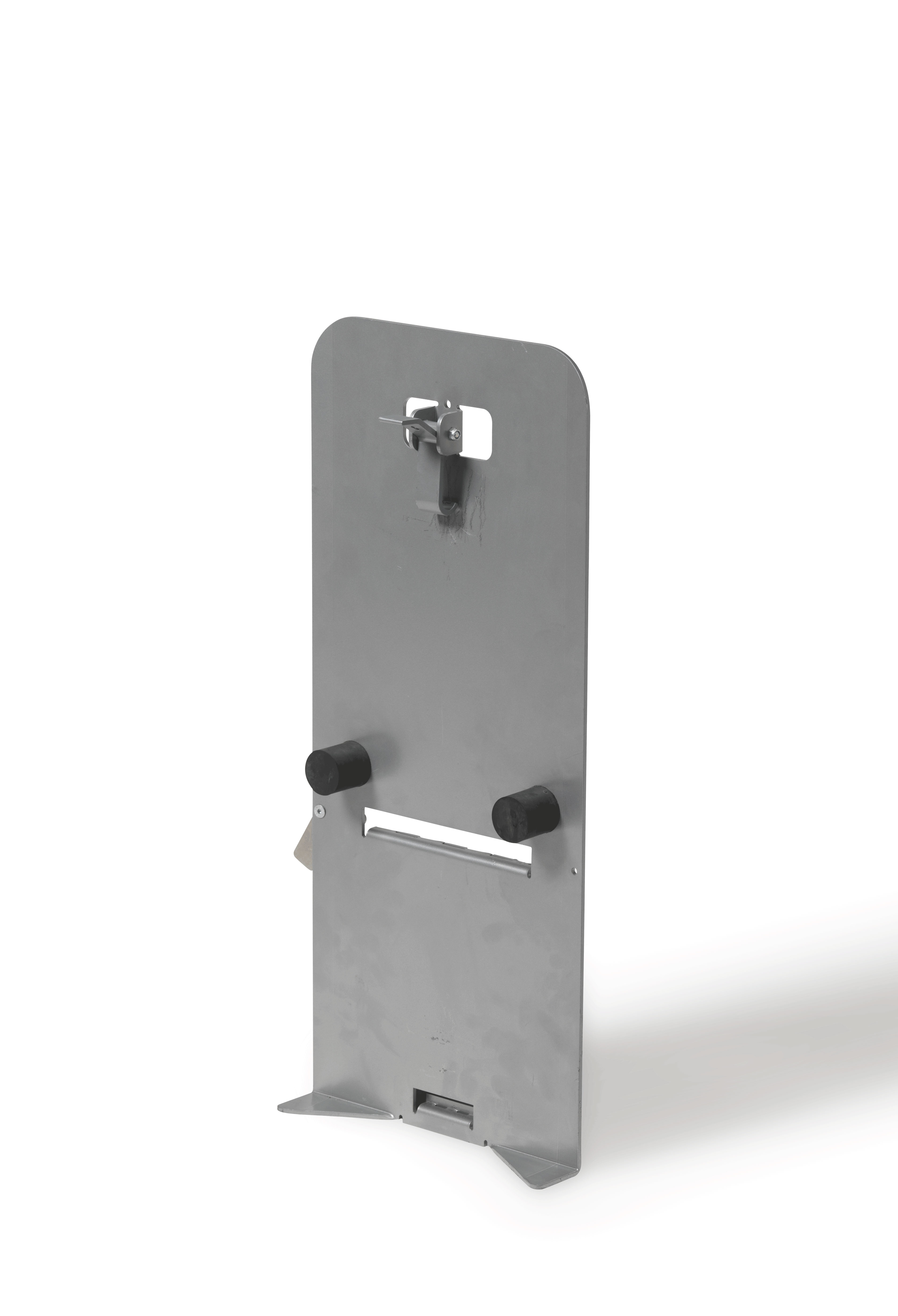 Dimensions hors tout : 520 x 270 x 1550 mm. Bavette fixe épaisseur 4 mm, dimensions 300 x 350 x 500 mm. Hauteur de levée maximale de 1,10 m avec une vitesse de levée de 100 mm/s. Poids total de l’élévateur : 42 kg.