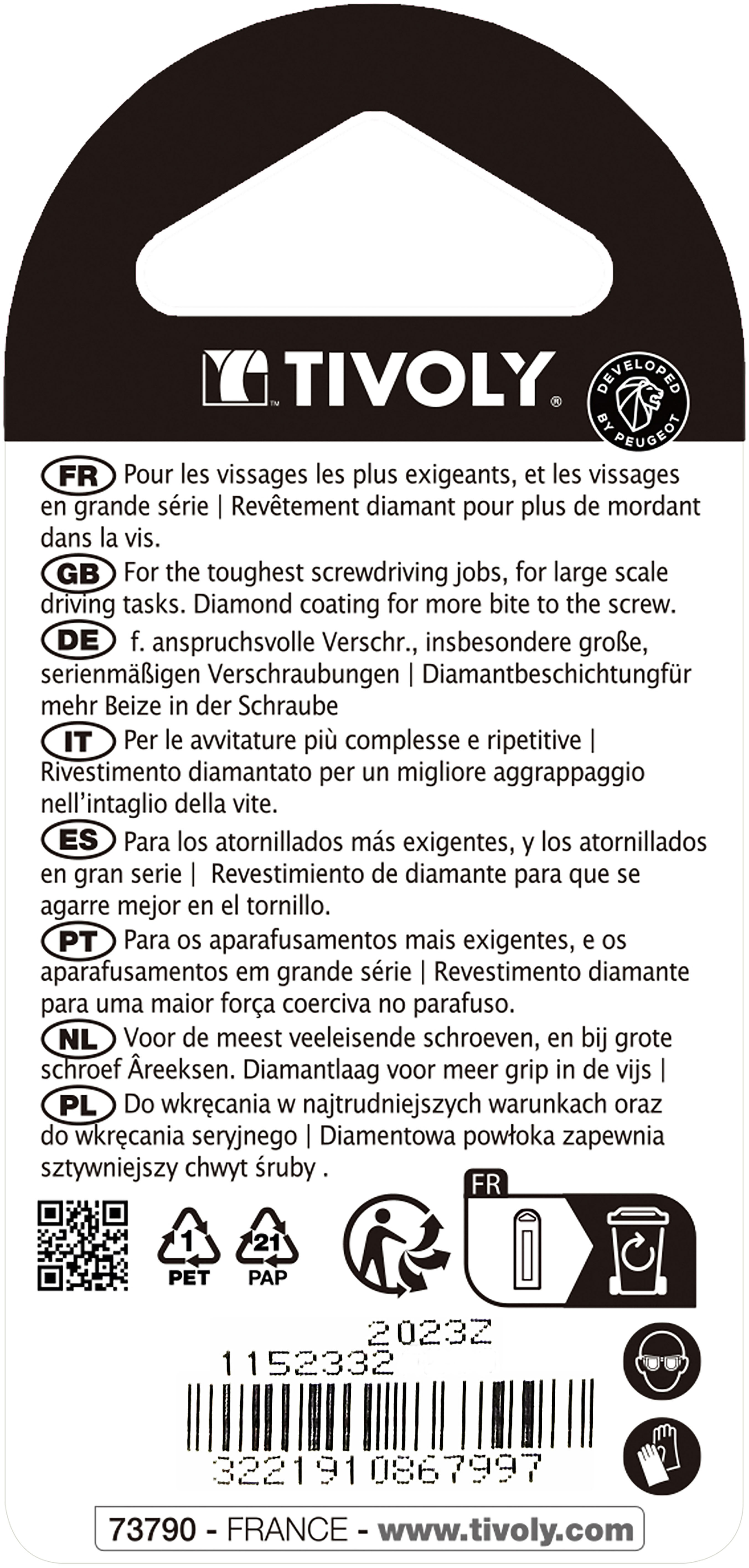 Embout de vissage -Torsion diamant IMPACT -Pour vis Phillips N°: N2 / L: 25 TIVOLY - 11523320200