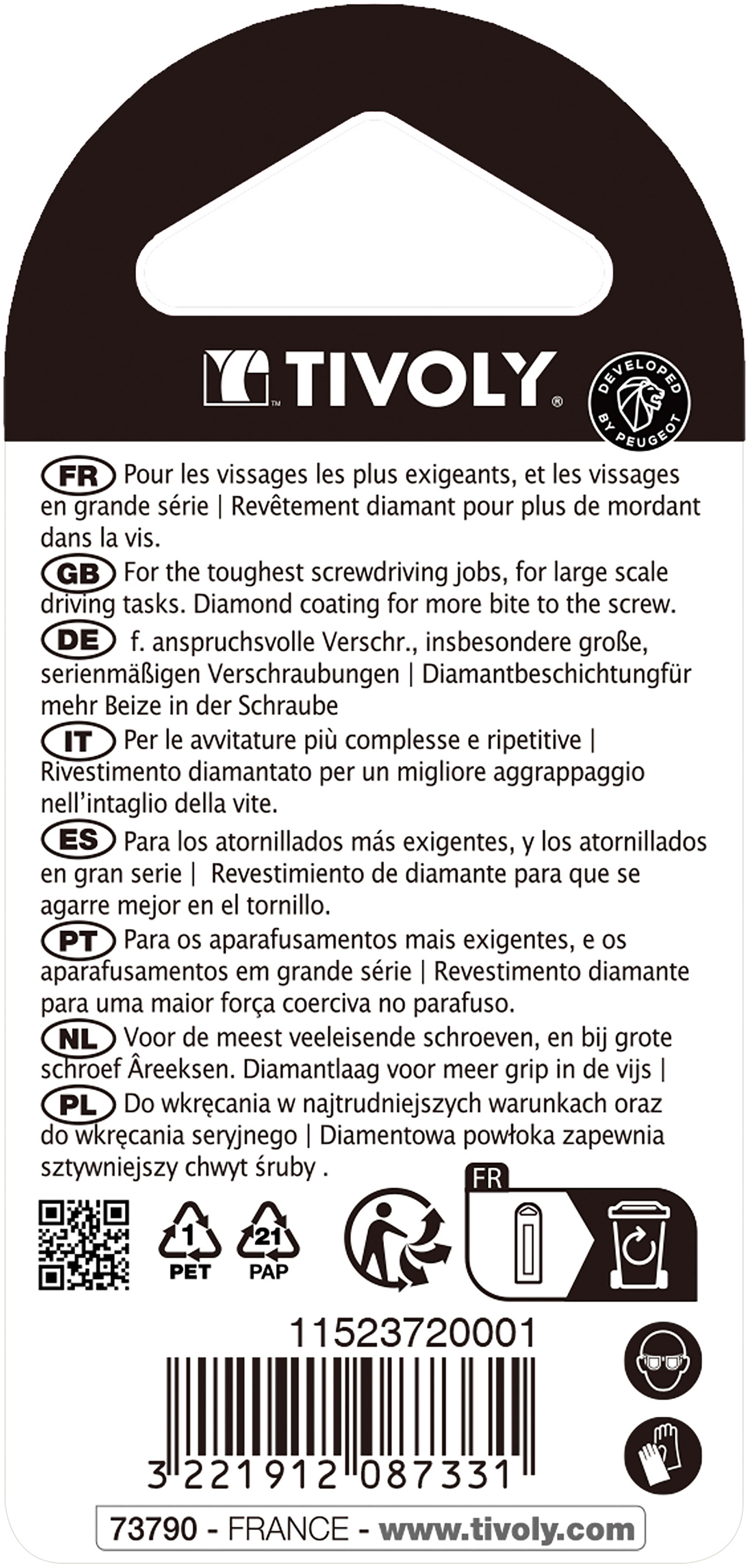 Embout de vissage -Torsion diamant IMPACT -Pour vis Pozidriv N°: N1-2-3 / L: 50 TIVOLY - 11523720001