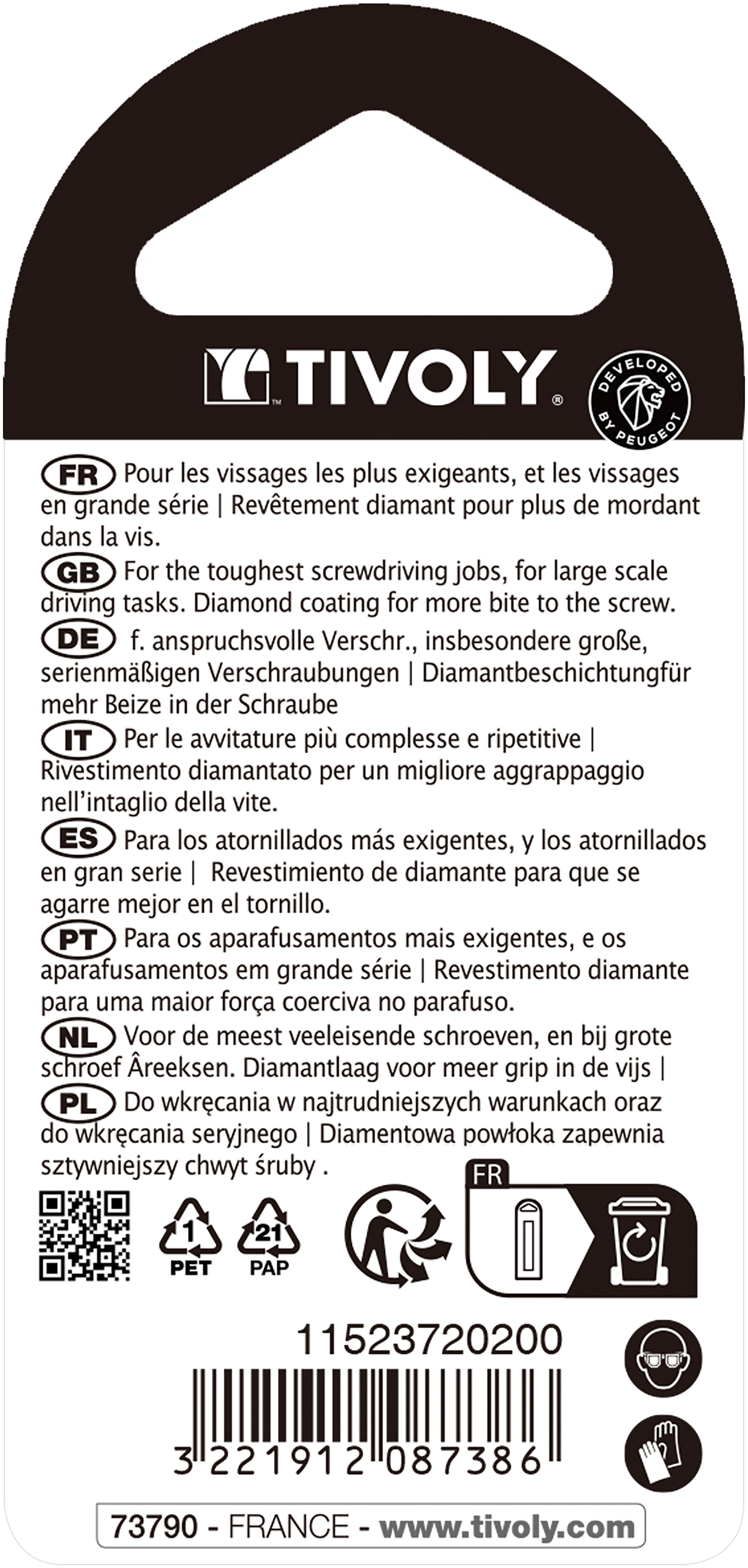 - Revêtement diamant pour un meilleur grip sur la vis.