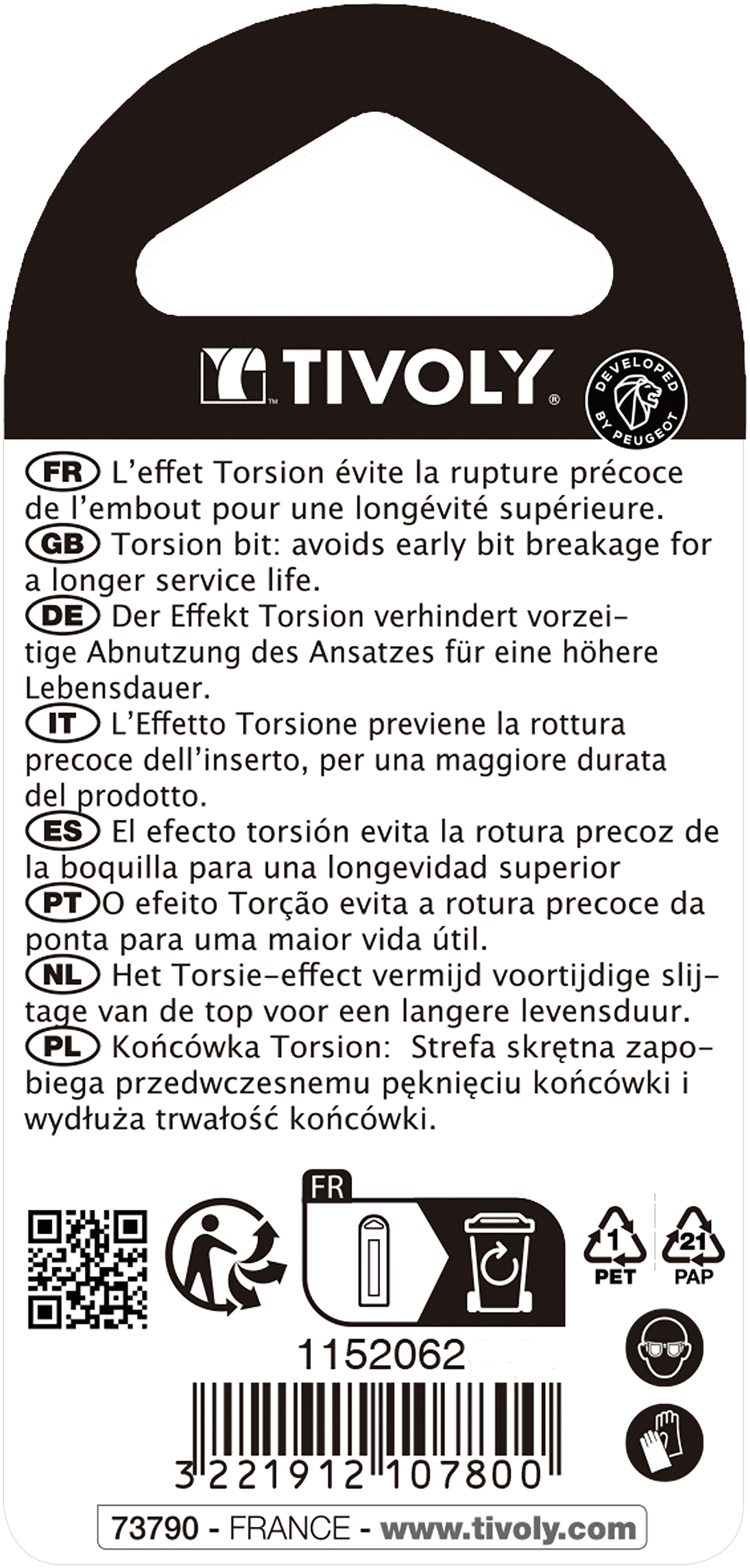 - Embout à effet Torsion pour prolonger la durée de vie