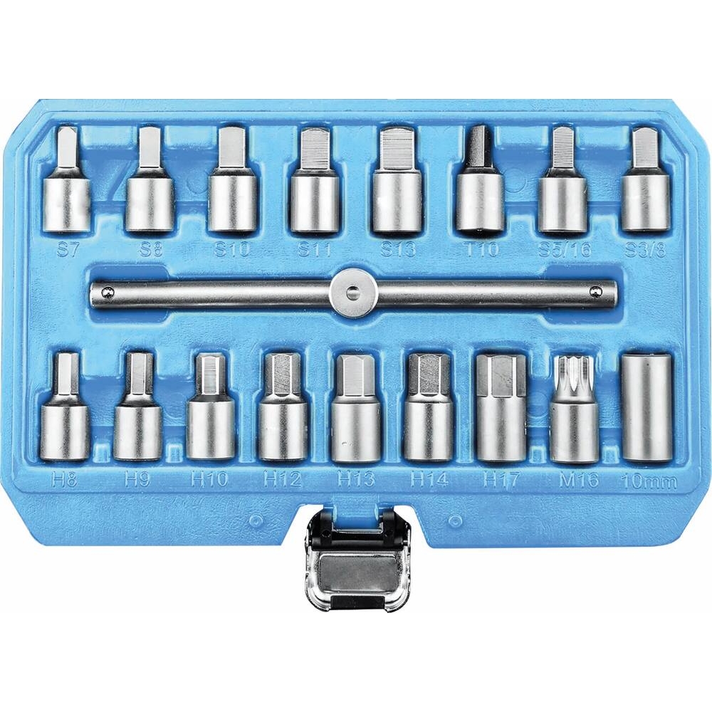 Ce set d'embouts est destiné à un usage professionnel et facilite les opérations de vidange avec sa vaste sélection de douilles. Il comprend des clés à six pans de 8, 9, 10, 12, 13, 14 et 17 mm, ainsi que trois douilles de 10 mm et un embout XZN percé de 16 mm. De plus, vous trouverez des carrés de 7, 8, 10, 11, 13, 5/16" et 3/8", ainsi qu'un carré femelle de 10 mm. Chaque pièce est fabriquée pour une performance optimale et une durabilité accrue.
