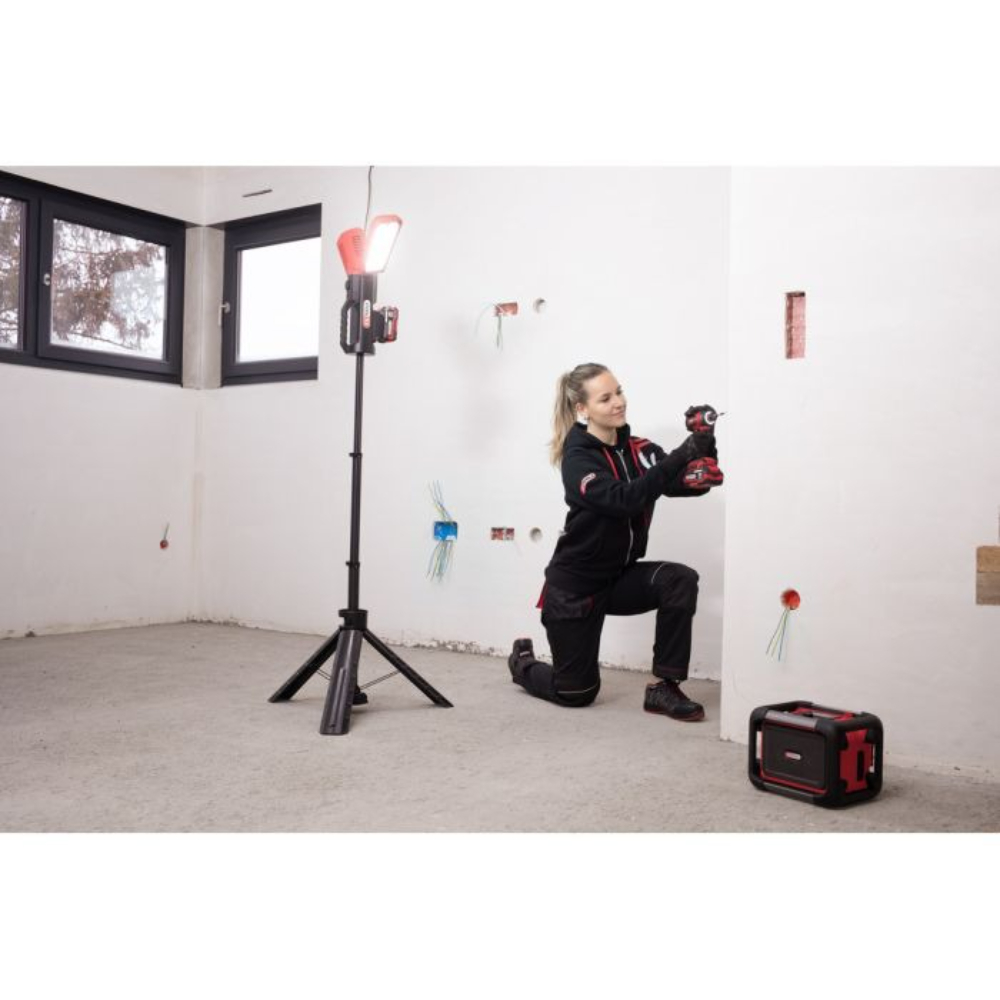 Conçue pour résister aux conditions les plus exigeantes du terrain, l’enceinte de chantier KS TOOLS 100172F allie robustesse, performance et mobilité. Sa cage de protection à 360° lui confère une excellente résistance aux chocs, à la poussière et aux projections d’eau, répondant à la norme IPX3. Polyvalente, elle fonctionne aussi bien sur secteur 100-240 V qu’avec une batterie lithium-ion 18 V ou 20 V de la gamme d’outillage électroportatif KS TOOLS, offrant ainsi une totale liberté d’utilisation.