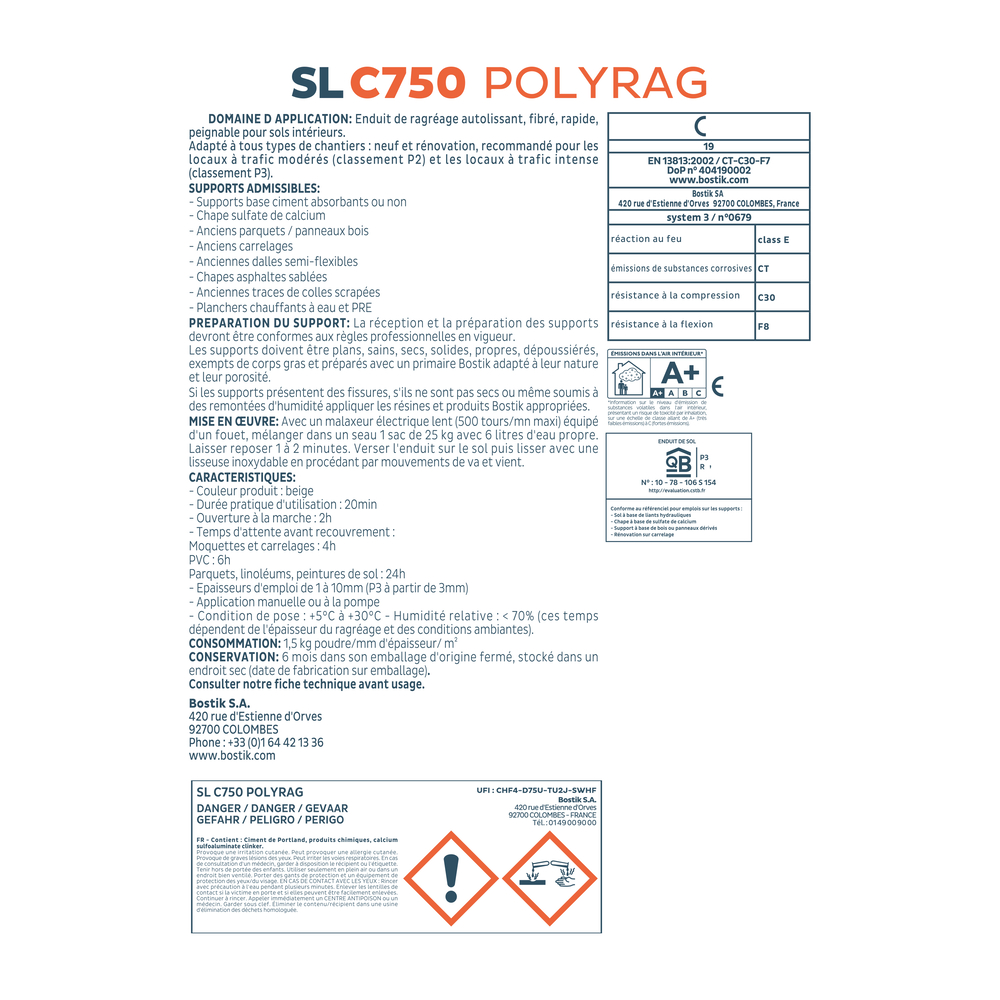 Découvrez Enduit de ragréage de sol fibré rapide SL C750 Polyrag - Sac 25kg - BOSTIK - 30615457 disponible à l'achat