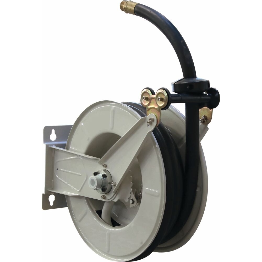 Découvrez Enrouleur de tuyau gasoil/GNR automatique fixe 8m 25mm avec raccord 1" DRAKKAR - 56338 disponible à l'achat