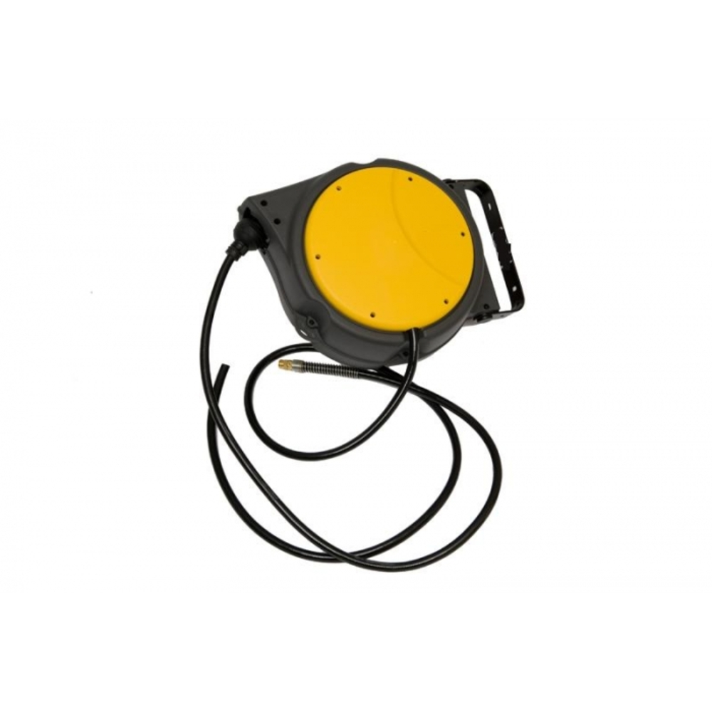 - Description et usage : Ce modèle est équipé d'un tuyau de 10 mètres de longueur avec un diamètre de 8 x 13 mm, permettant une grande flexibilité d'utilisation. Il est idéal pour les travaux nécessitant une alimentation en air comprimé avec un retour automatique du tuyau pour un rangement facilité. Son étrier pivotant assure un accès aisé au tuyau et améliore le confort d'utilisation.