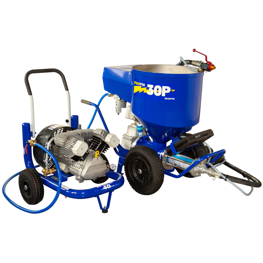 Le modèle de projection le plus puissant disponible dans notre gamme est spécialement conçu pour offrir un rendement élevé, particulièrement adapté aux grands chantiers de construction. Il se compose d'une machine à projeter de type DROPPRO 30P, dotée d'une cuve d'une capacité de 90 litres, associée à un compresseur EUROPRO 40. Ce dispositif est idéal pour une variété d'applications, incluant des produits pâteux tels que l'enduit de cuvelage, l'enduit film mince, l'enduit de lissage, ainsi que des finitions décoratives et des gouttelettes. Il permet également de travailler avec des produits fibreux, comme la pâte à papier et des matériaux décoratifs à base de fibres, ainsi que des solutions d'imperméabilisation, des revêtements plastiques épais (R.P.E.) et du liège à projeter, offrant ainsi une polyvalence remarquable pour différents types de travaux.