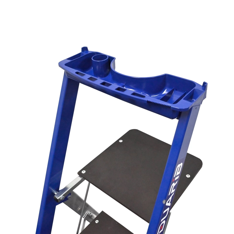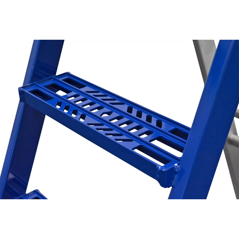 Il respecte la norme EN 131, garantissant la sécurité de l'utilisateur. Le garde-corps mesure 650 mm de hauteur et la plate-forme antidérapante fait 315 x 310 mm. Les patins antidérapants extra larges assurent une stabilité optimale. La charge maximale supportée est de 150 kg.