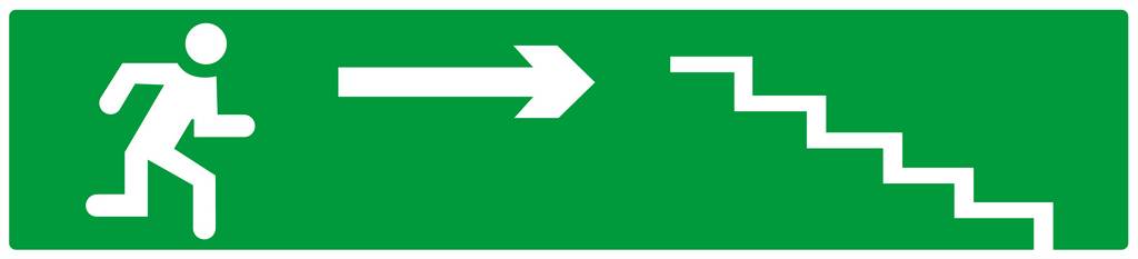 Signaux indiquant une issue de secours, l'emplacement des équipements de sécurité ou d'un local de sécurité (ou une action de sécurité) conformes à la norme internationale ISO 7010. La forme, la couleur et la conception des symboles graphiques de ces signaux sont conformes à l'ISO 3864-1 et ISO 3864-3.