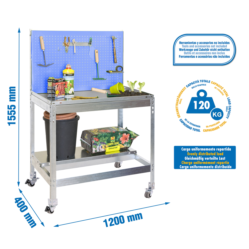 Établi de jardin - 1520x1200x400 - 2 niveaux Bleu - SIMON RACK - 8435104988534